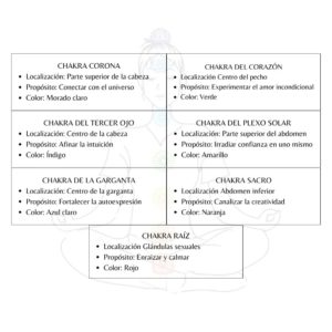 Los chakras, que en sánscrito antiguo significan “ruedas”, son puntos de energía que corresponden a órganos y nervios específicos. Cuando estos chakras están bloqueados o desalineados, pueden surgir dificultades para manifestar energía positiva, equilibrio y paz en nuestras vidas. Pero cuando nuestros chakras están abiertos y equilibrados, permiten que la fuerza vital fluya libremente, lo que genera equilibrio físico, emocional y espiritual, llevándonos a sentirnos en paz y armonía.