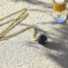 Lua es más que un simple collar; es una herramienta de bienestar personal y un accesorio que te acompaña a lo largo de tu día. El collar difusor Lua tiene un diseño sencillo formado por una piedra de lava y una cadena de acero inoxidable color oro.